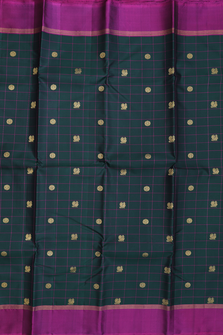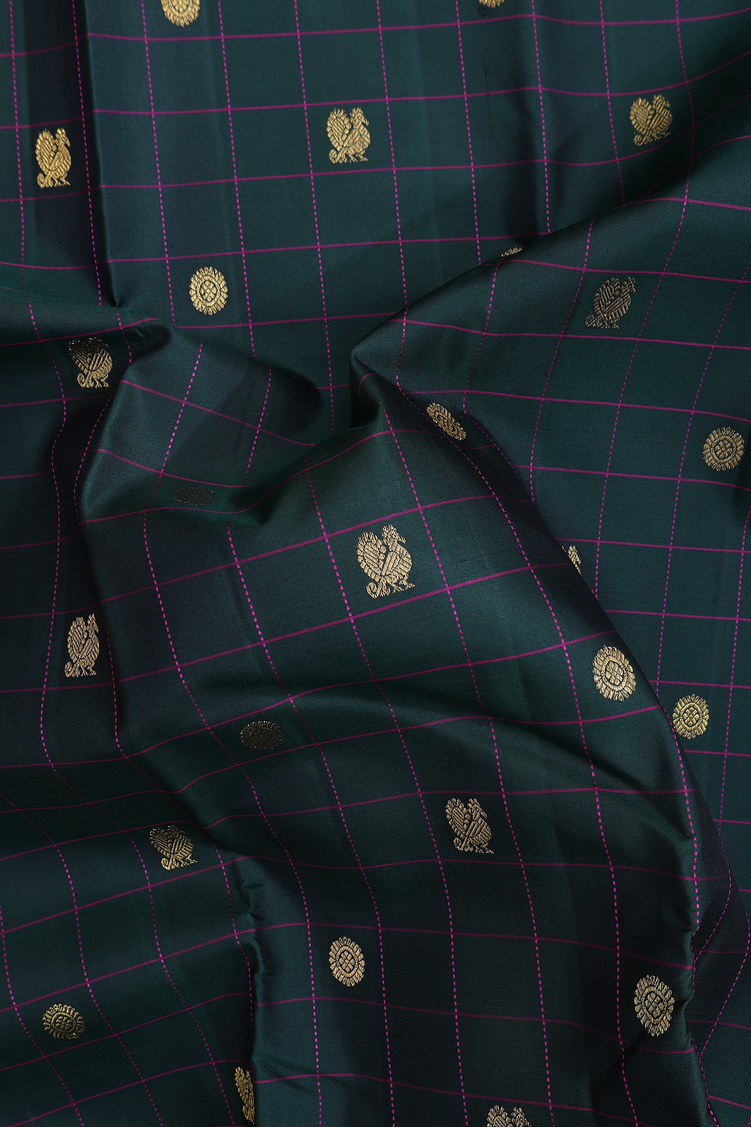 Kanchipuram Silk Saree In Dark Green With Checks Along Buttas