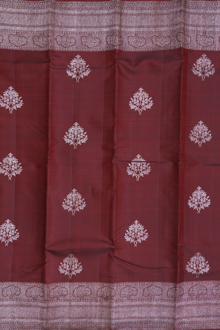 Kanchipuram Silk Saree In Dark Maroon With Tree Motifs