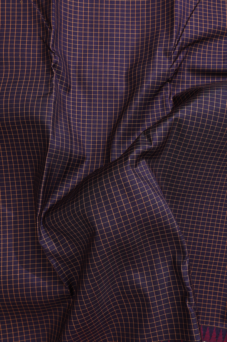 Kanchipuram Silk Saree In Dark Oak Brown With Checks Design