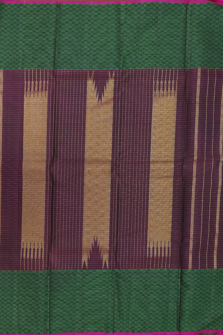 Kanchipuram Silk Saree In Dark Oak Brown With Checks Design