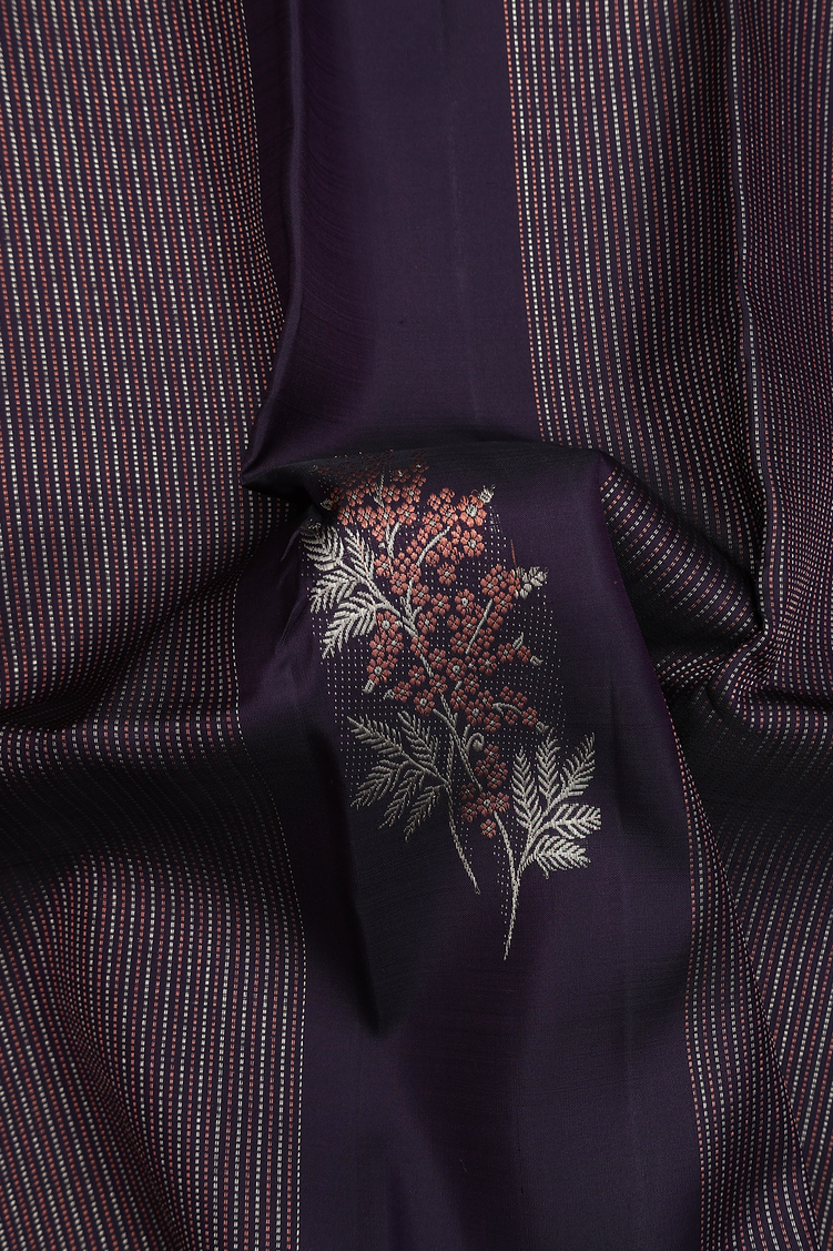 Kanchipuram Silk Saree In Dark Oak Brown With Floral Design