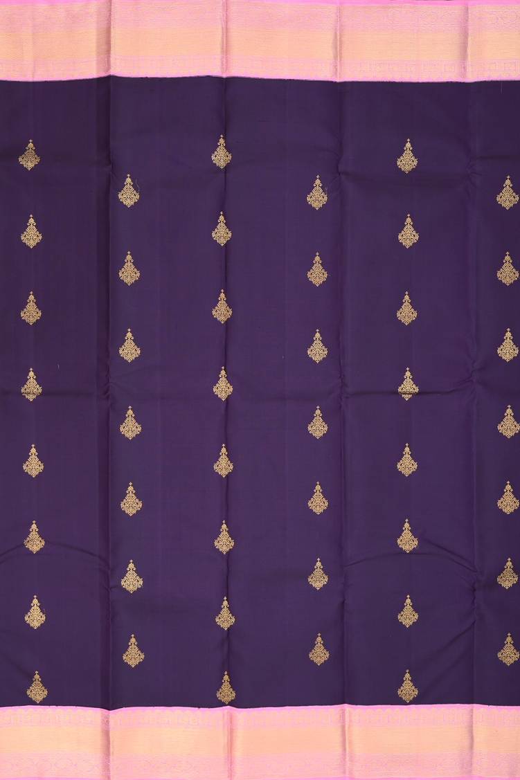 Kanchipuram Silk Saree In Dark Oak Brown With Zari Buttas