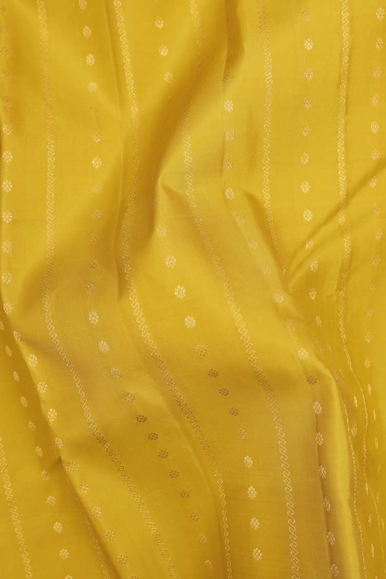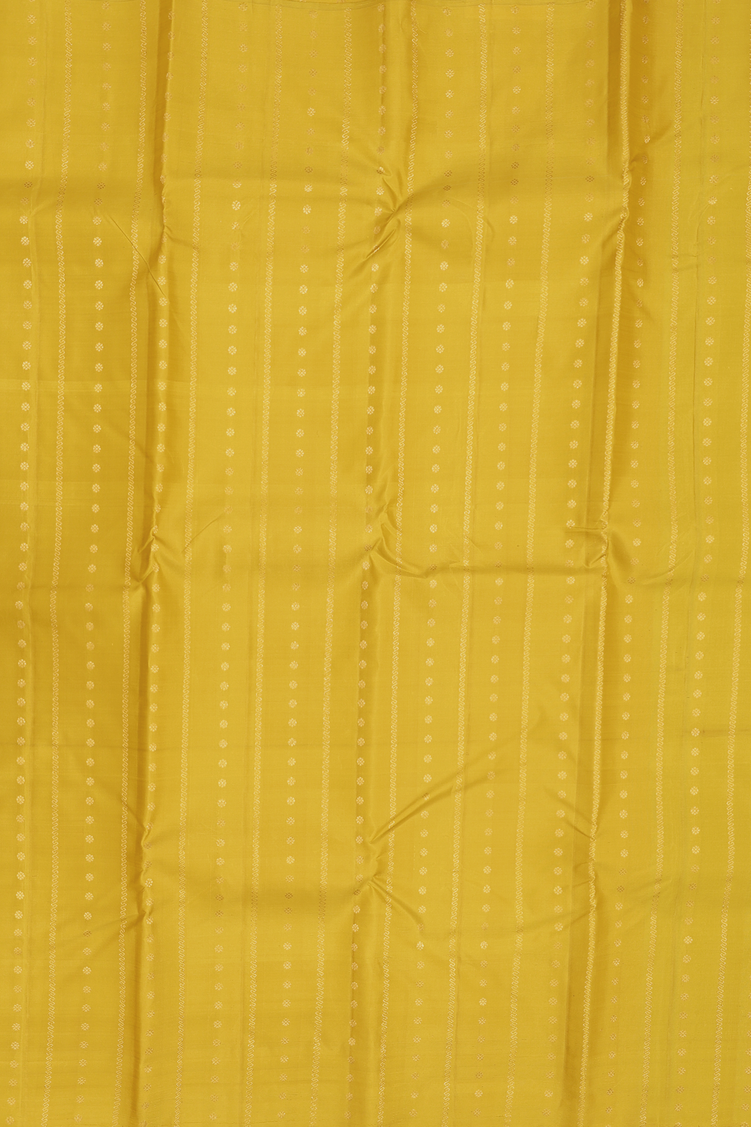 Kanchipuram Silk Saree In Dark Yellow With Stripes Design