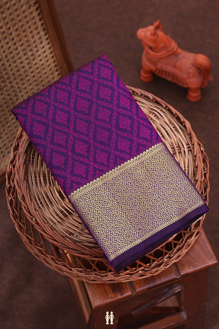 Kanchipuram Silk Saree In Deep Purple With Jacquard Pattern