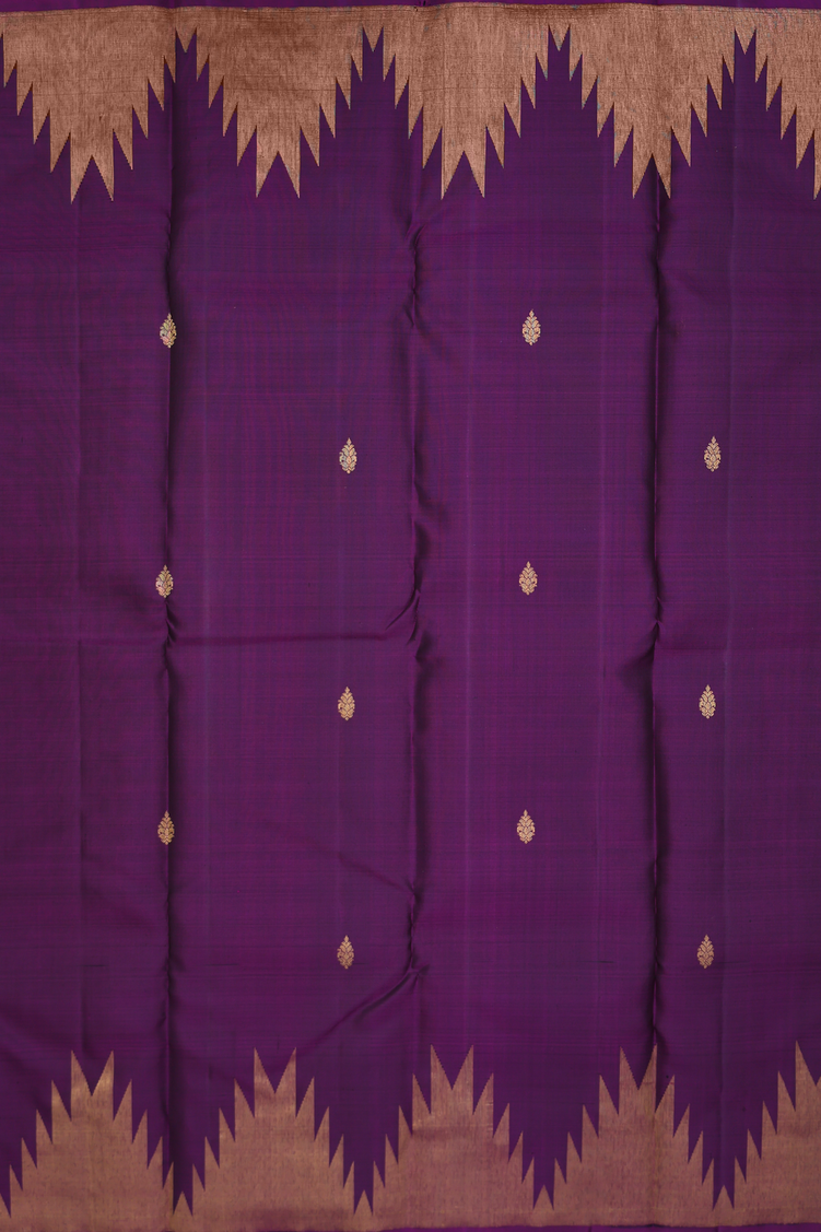Kanchipuram Silk Saree In Deep Purple With Zari Buttas