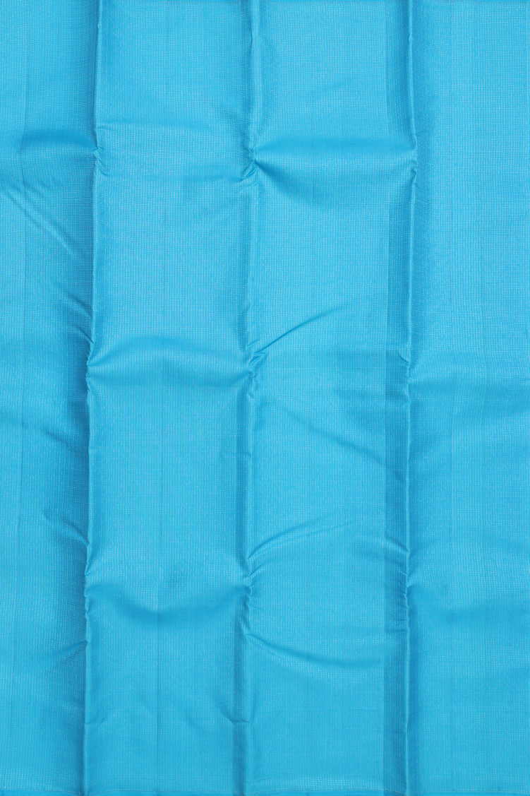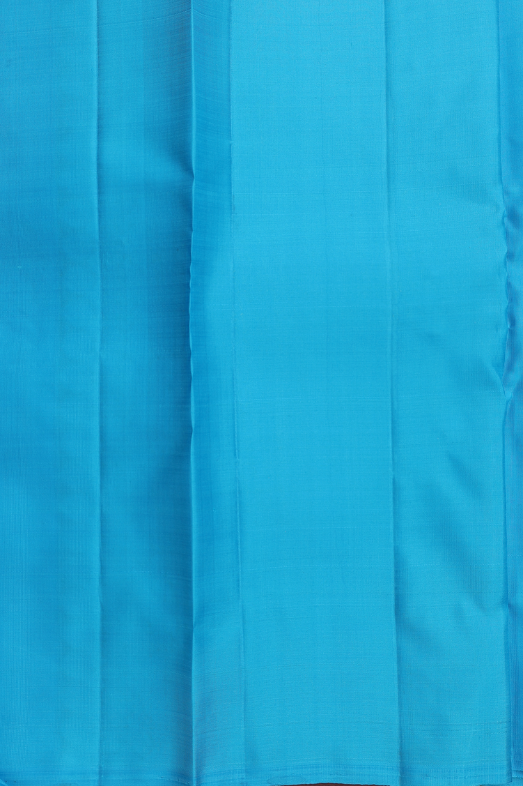 Kanchipuram Silk Saree In Deep Sky Blue With Stripes Design