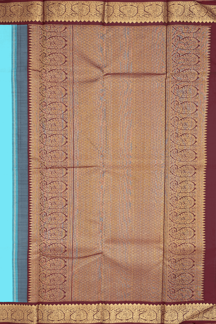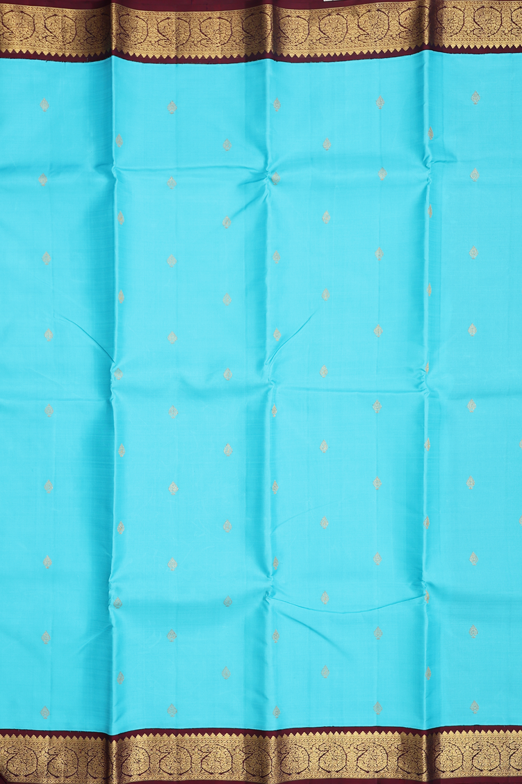 Kanchipuram Silk Saree In Deep Sky Blue With Zari Buttas
