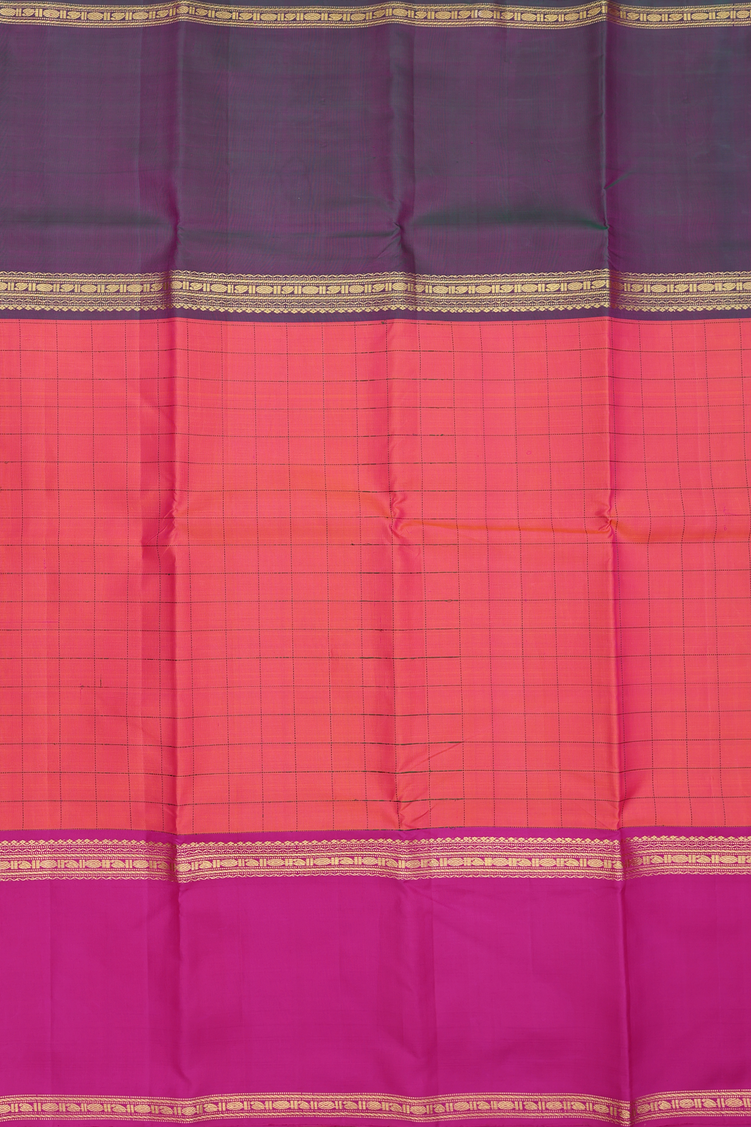 Kanchipuram Silk Saree In Dual Tone With Checks Design