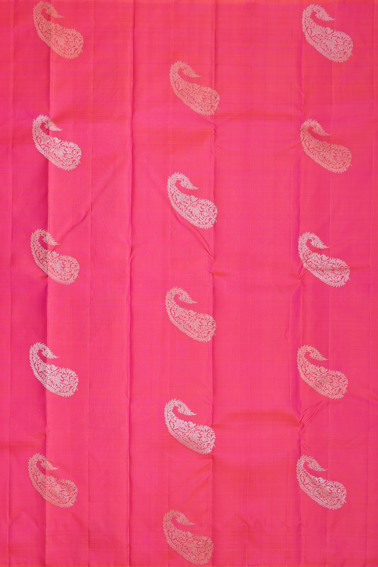 Kanchipuram Silk Saree In Coral Pink With Paisley Motifs