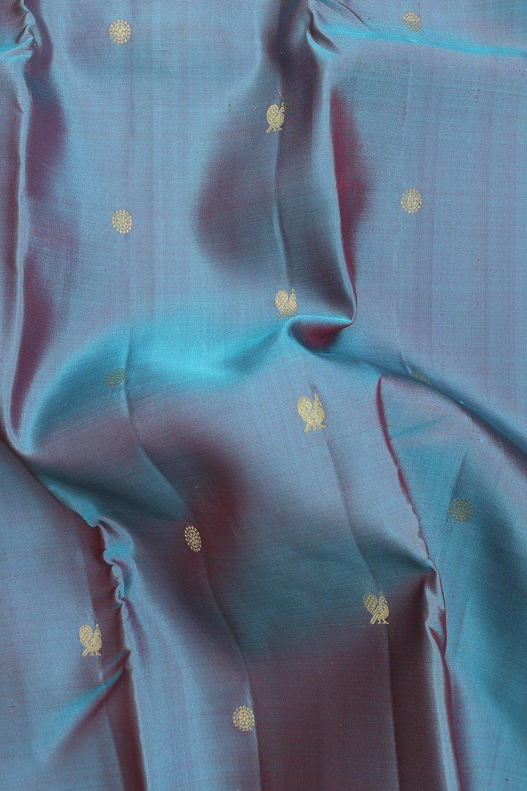 Kanchipuram Silk Saree In Dual Tone With Peacock Buttas