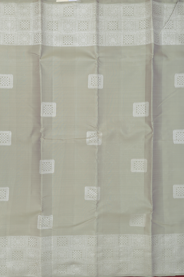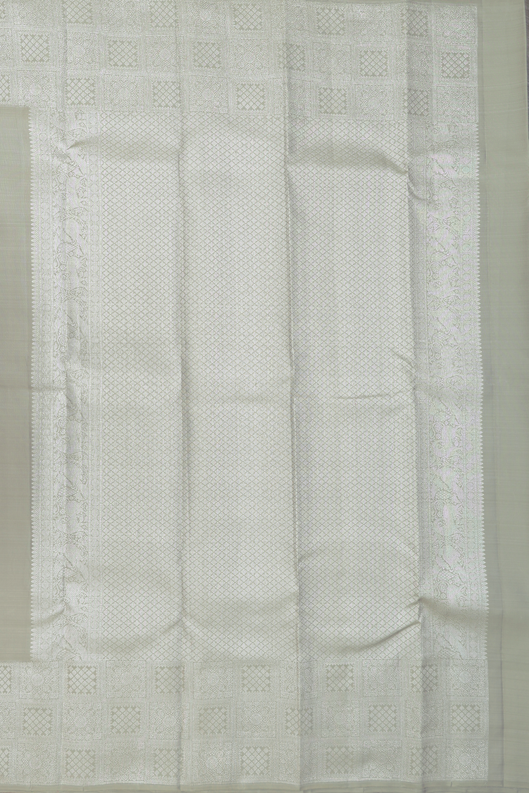 Kanchipuram Silk Saree In Dusty Green With Square Motifs