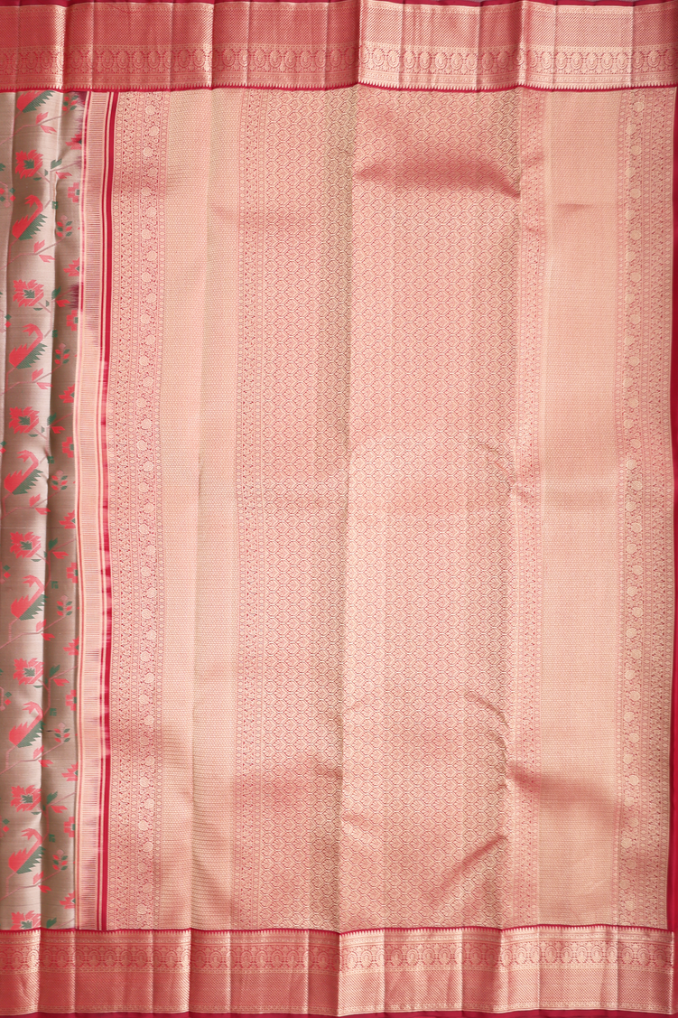 Kanchipuram Silk Saree In Dusty Khaki With Jacquard Pattern
