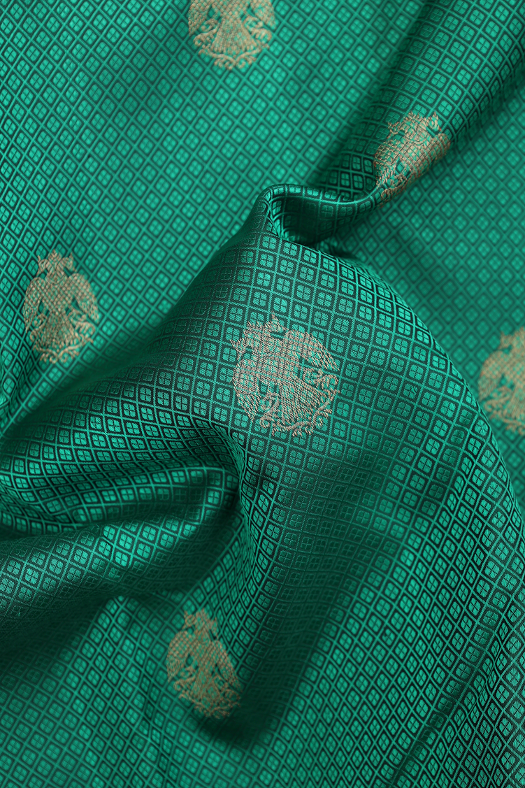 Kanchipuram Silk Saree In Emerald Green With Jacquard Pattern