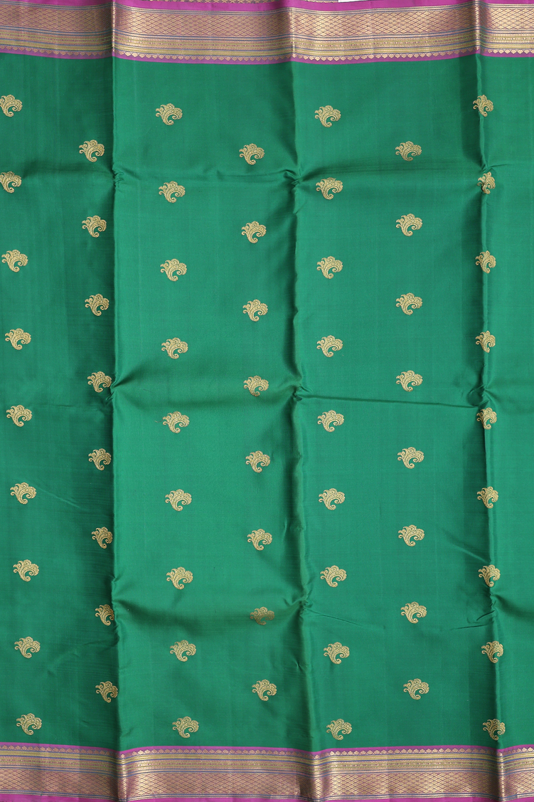 Kanchipuram Silk Saree In Emerald Green With Zari Buttas