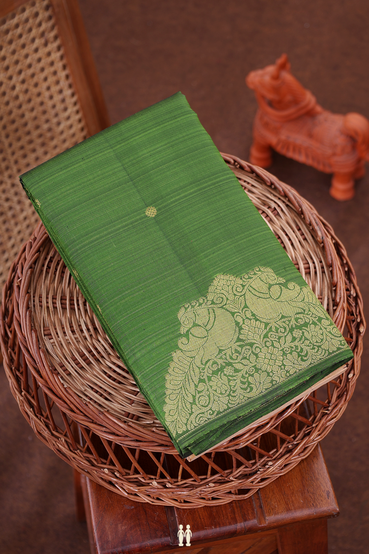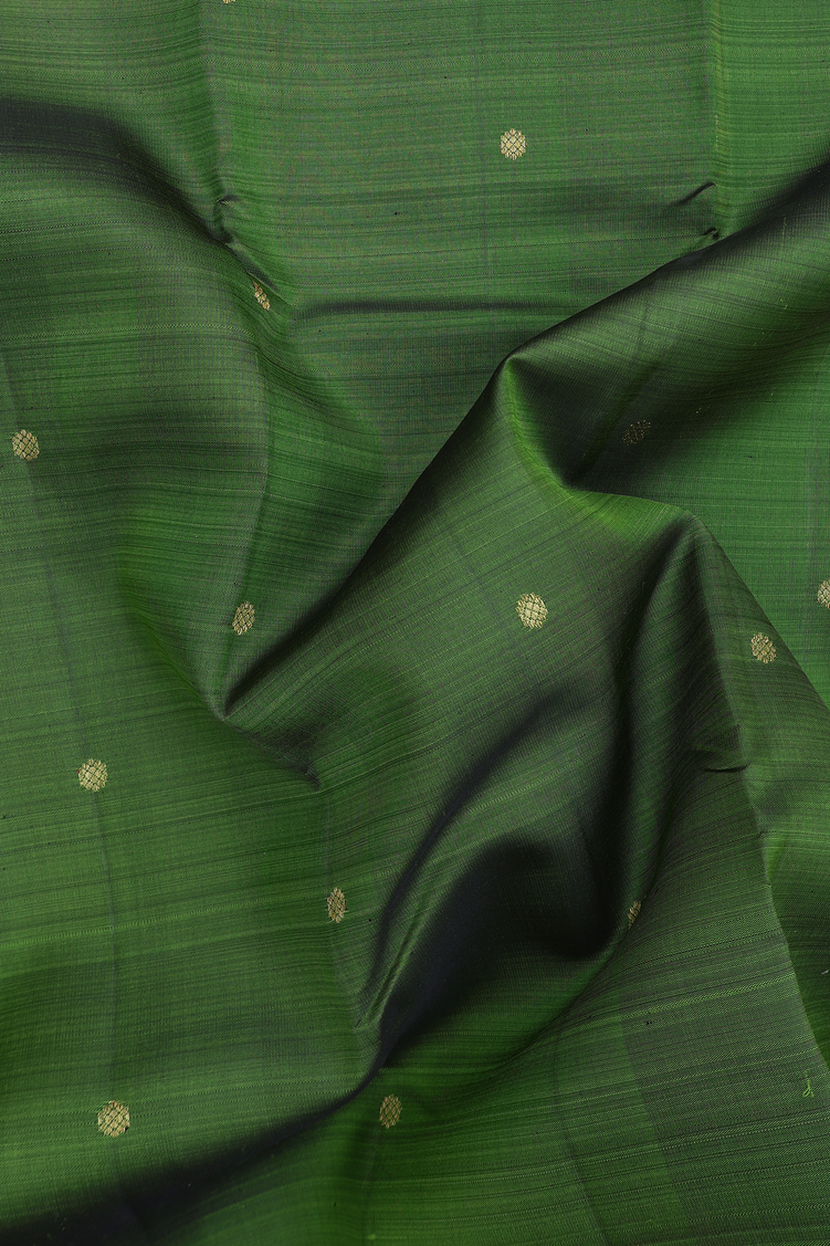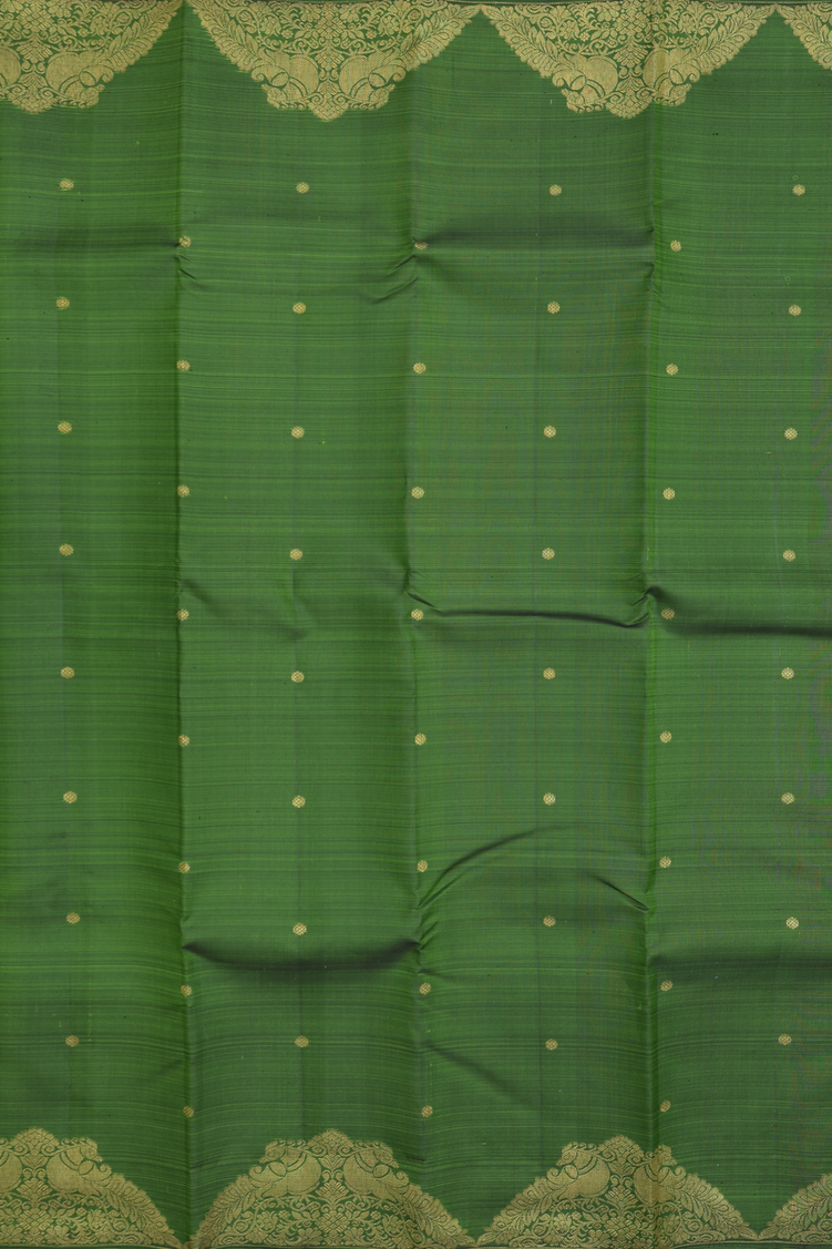 Kanchipuram Silk Saree In Fern Green With Zari Buttas