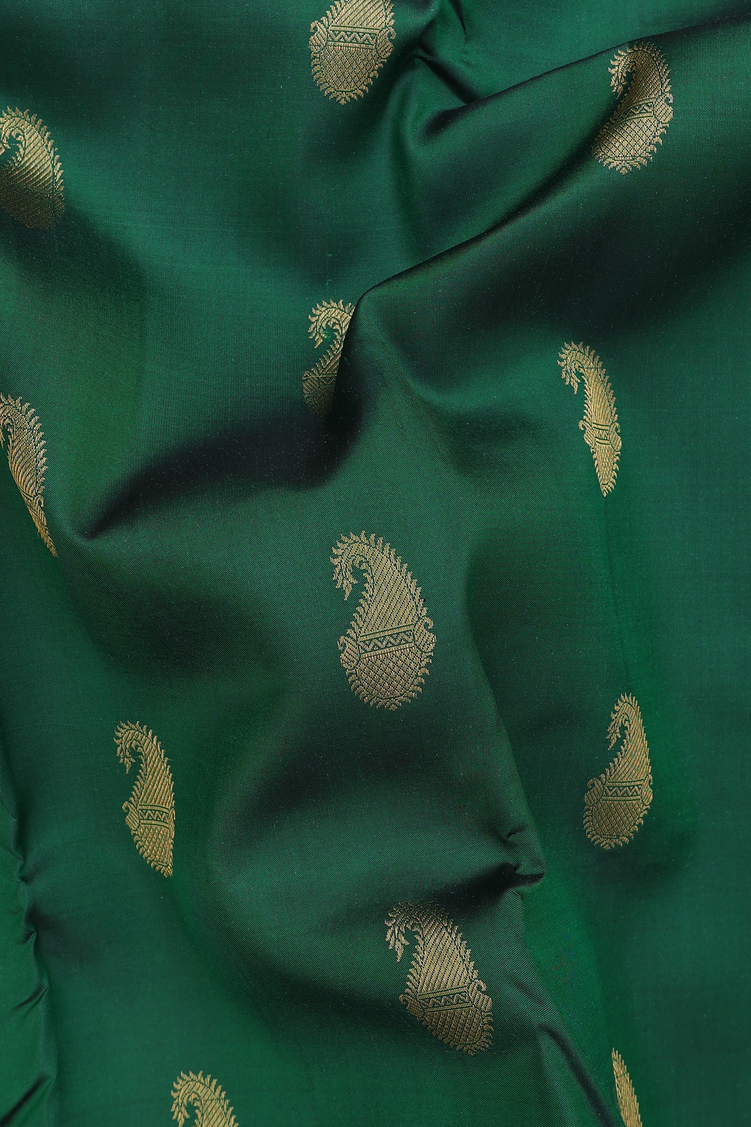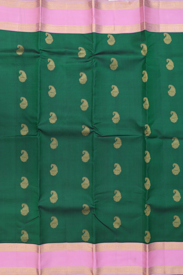 Kanchipuram Silk Saree In Forest Green With Paisley Buttas