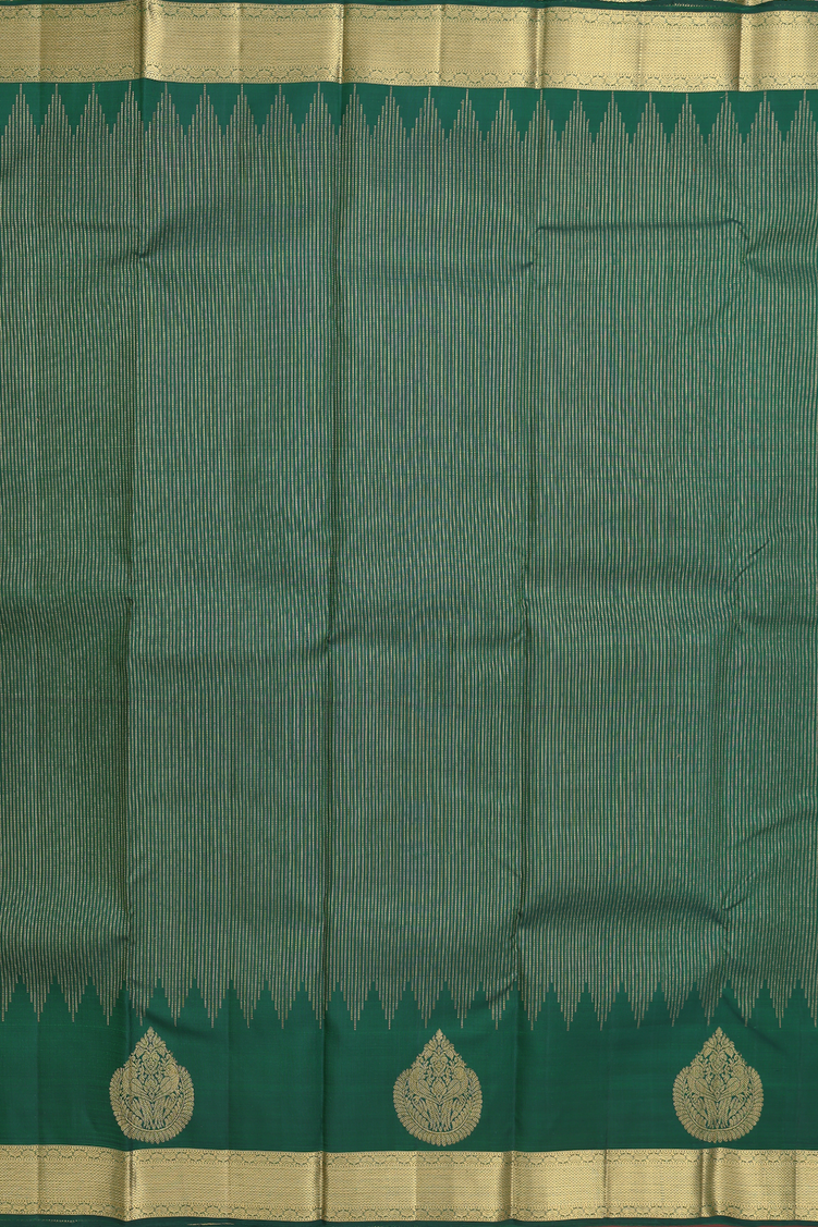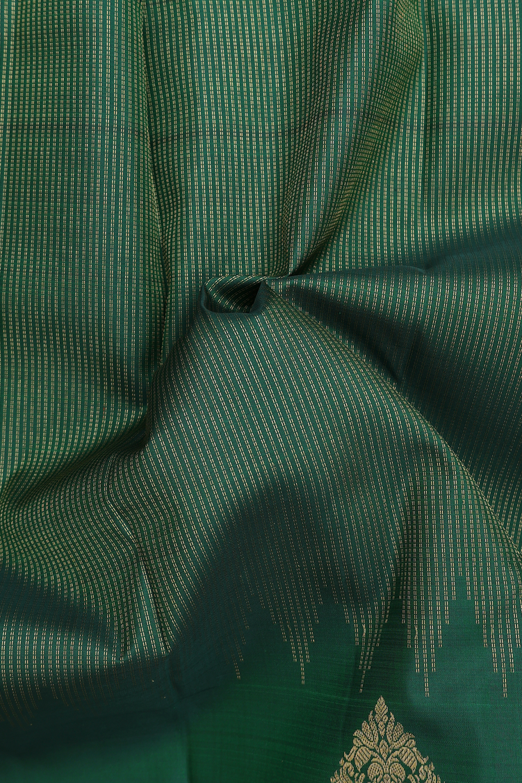 Kanchipuram Silk Saree In Forest Green With Stripes Design