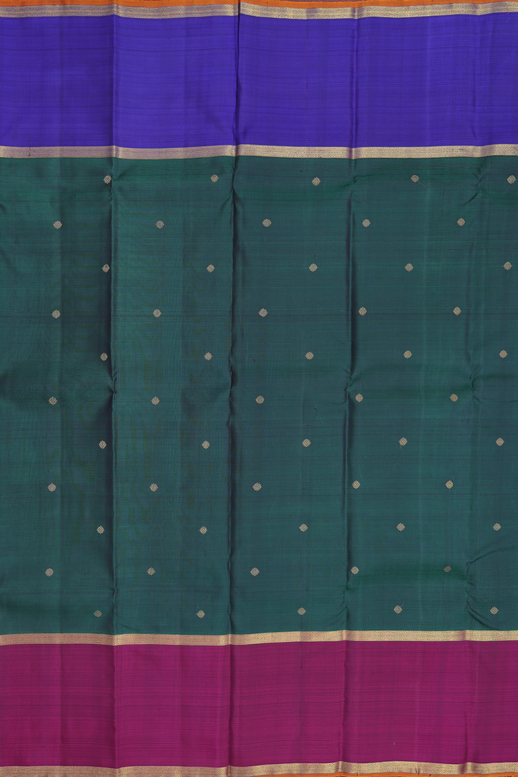 Kanchipuram Silk Saree In Forest Green With Zari Buttas
