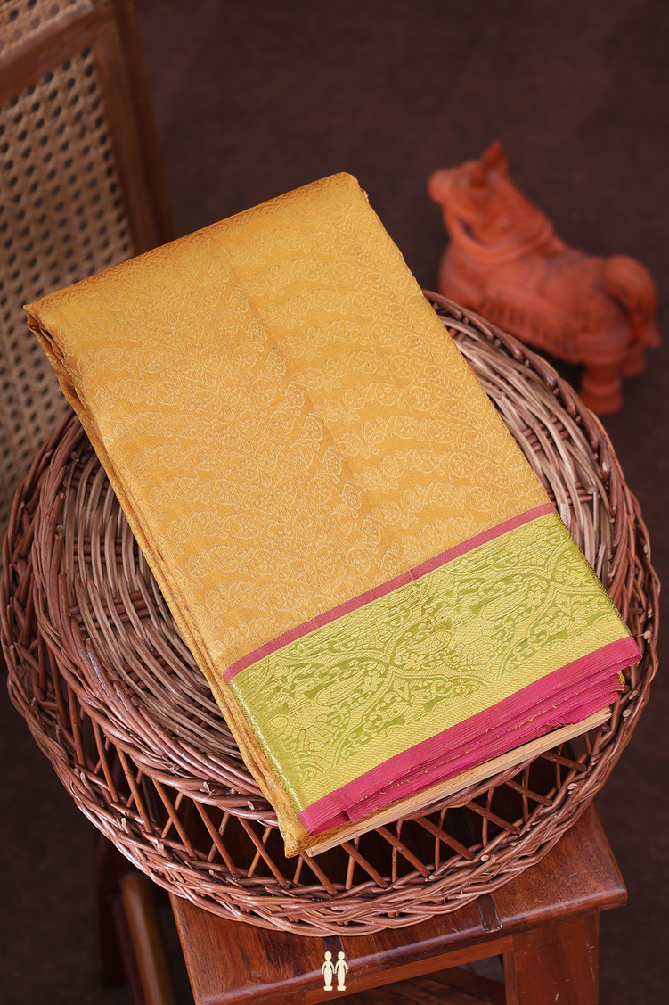 Kanchipuram Silk Saree In Golden Yellow With Brocade Design