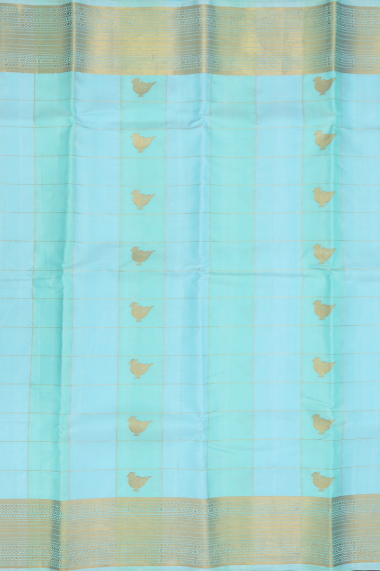 Kanchipuram Silk Saree In Green And Blue With Checks Design