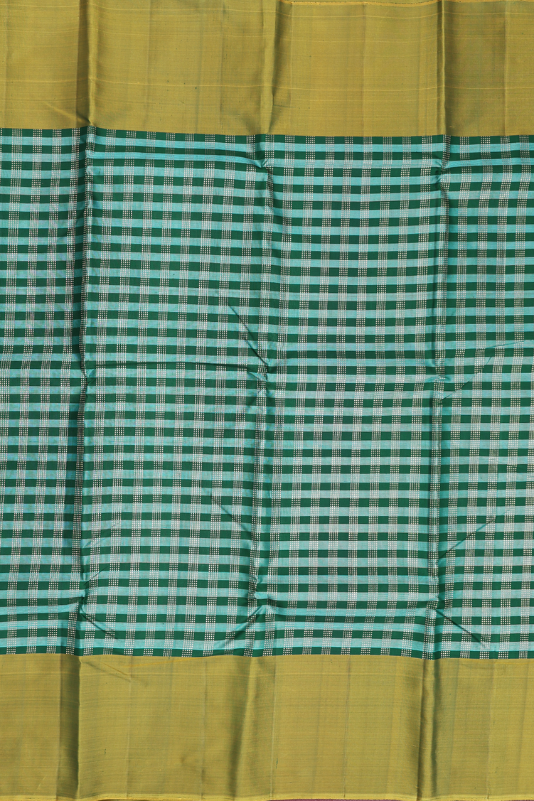 Kanchipuram Silk Saree In Green And Blue With Checks Design