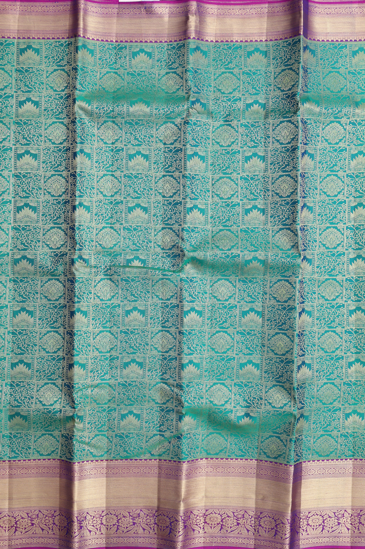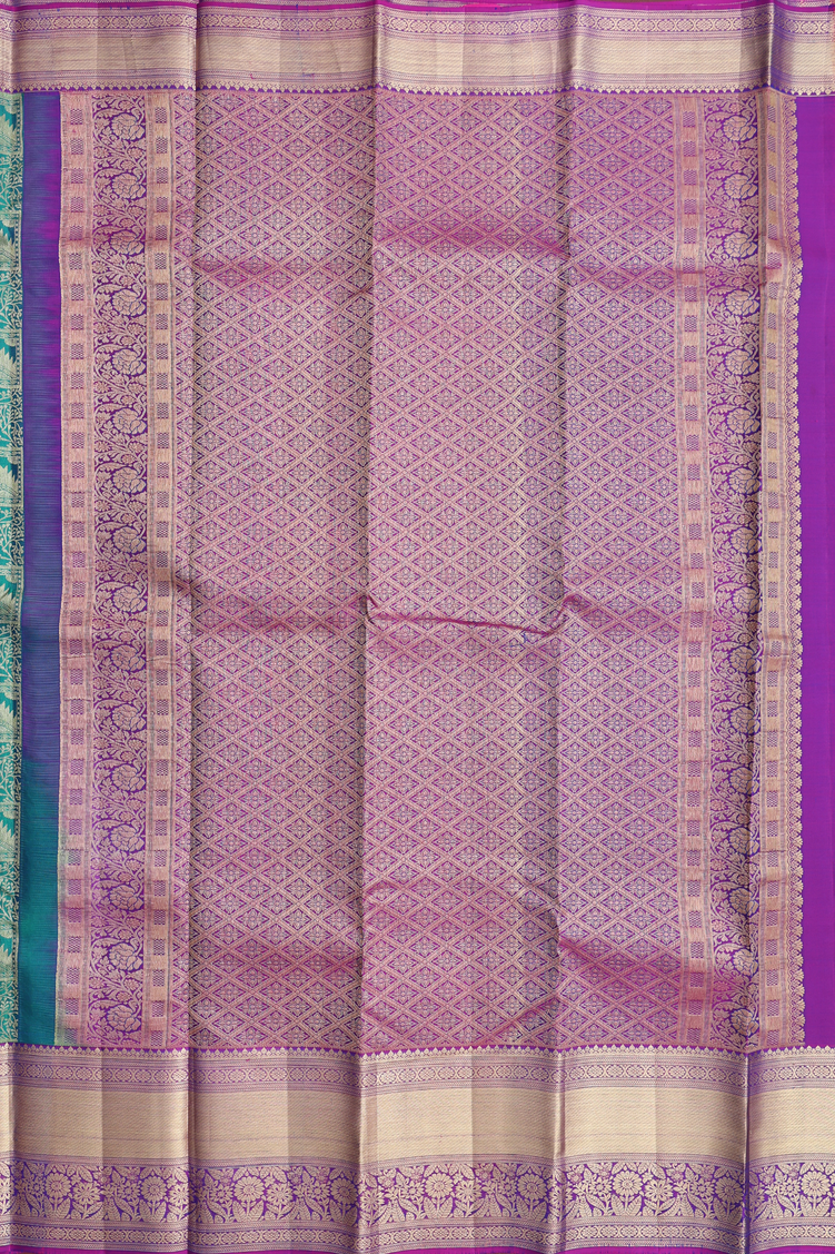 Elevate your ethnic wardrobe with this exquisite kanchipuram silk saree, a timeless masterpiece crafted from pure silk. The rich green fabric showcases an intricate brocade design that captures light beautifully, while the striking purple contrast border adds a contemporary edge to this traditional weave. Kanchipuram silk is renowned for its durability and lustrous finish, making this saree perfect for weddings, festivals, and special occasions. The harmonious color combination of green and purple creates a sophisticated look that complements various skin tones. Ideal for those who appreciate authentic South Indian textiles with modern sensibility.