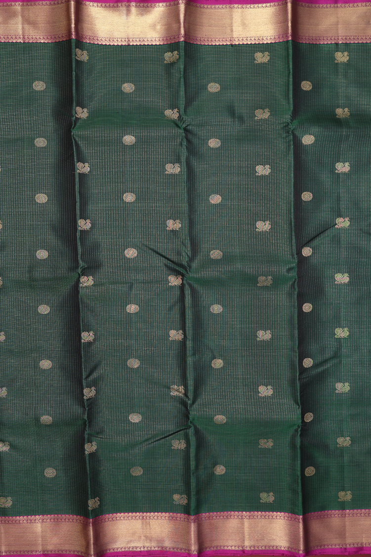 Kanchipuram Silk Saree In Green With Checks Along Buttas