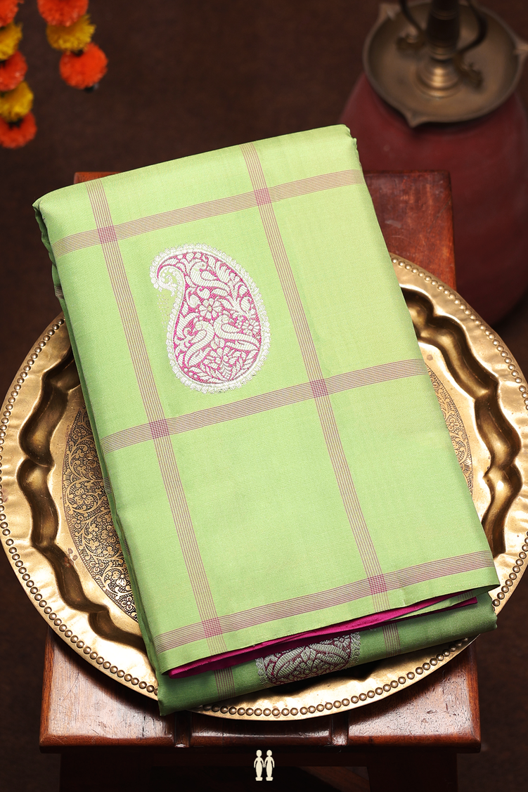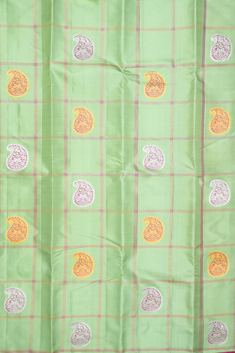 Kanchipuram Silk Saree In Green With Checks Along Buttas