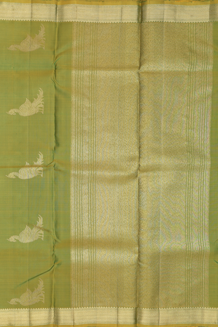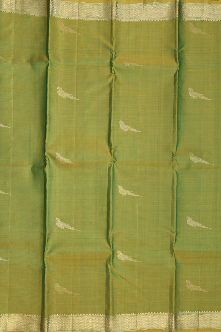 Kanchipuram Silk Saree In Green With Parrot Motifs