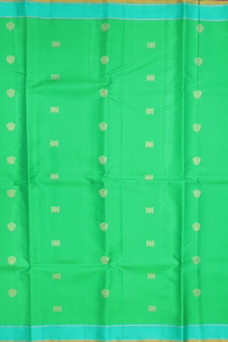Kanchipuram Silk Saree In Green With Zari Buttas