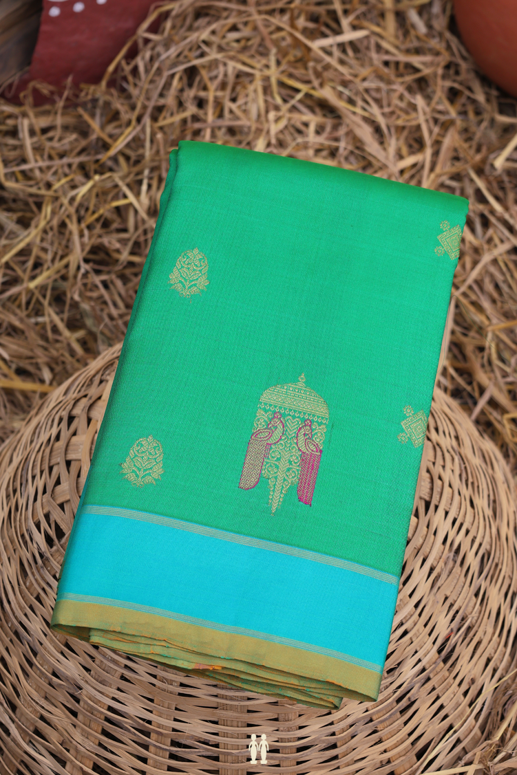 Kanchipuram Silk Saree In Green With Zari Buttas