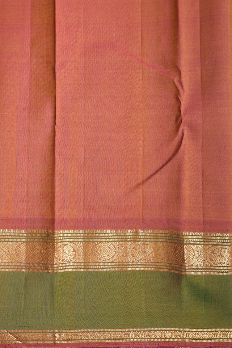 Kanchipuram Silk Saree In Golden Brown With Peacock Buttas