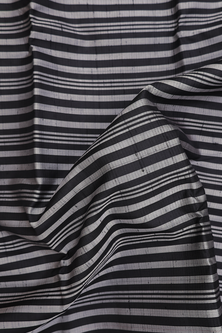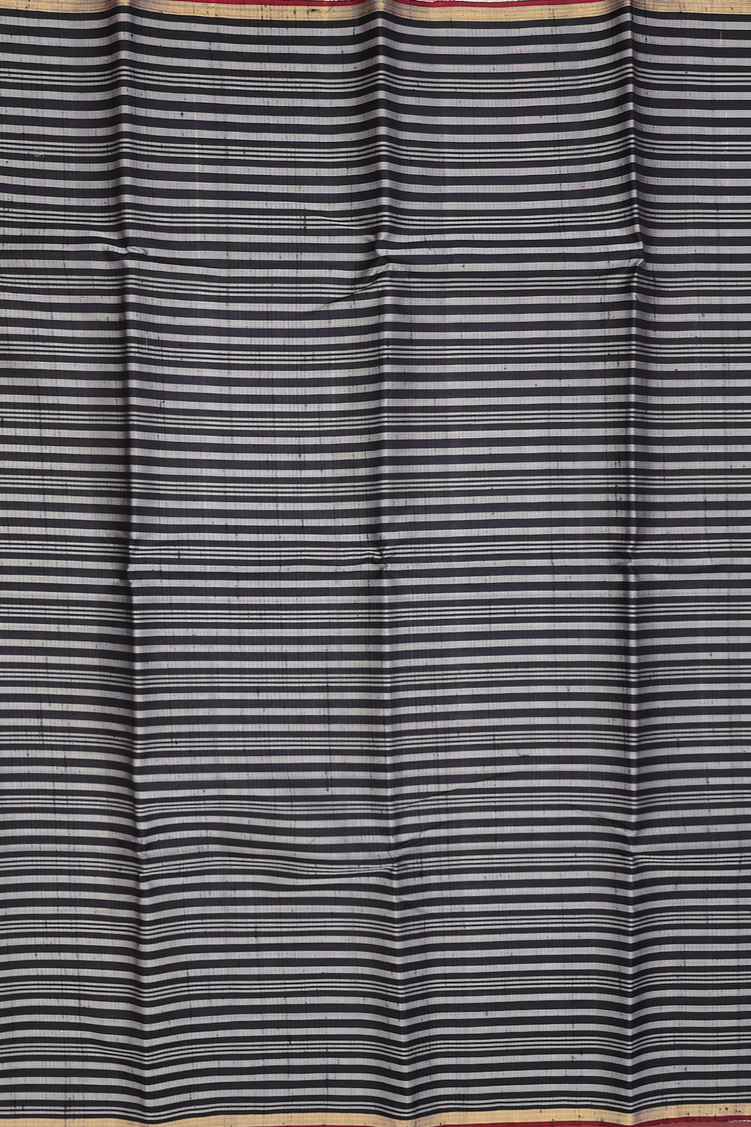 Kanchipuram Silk Saree In Grey And Black With Stripes Design