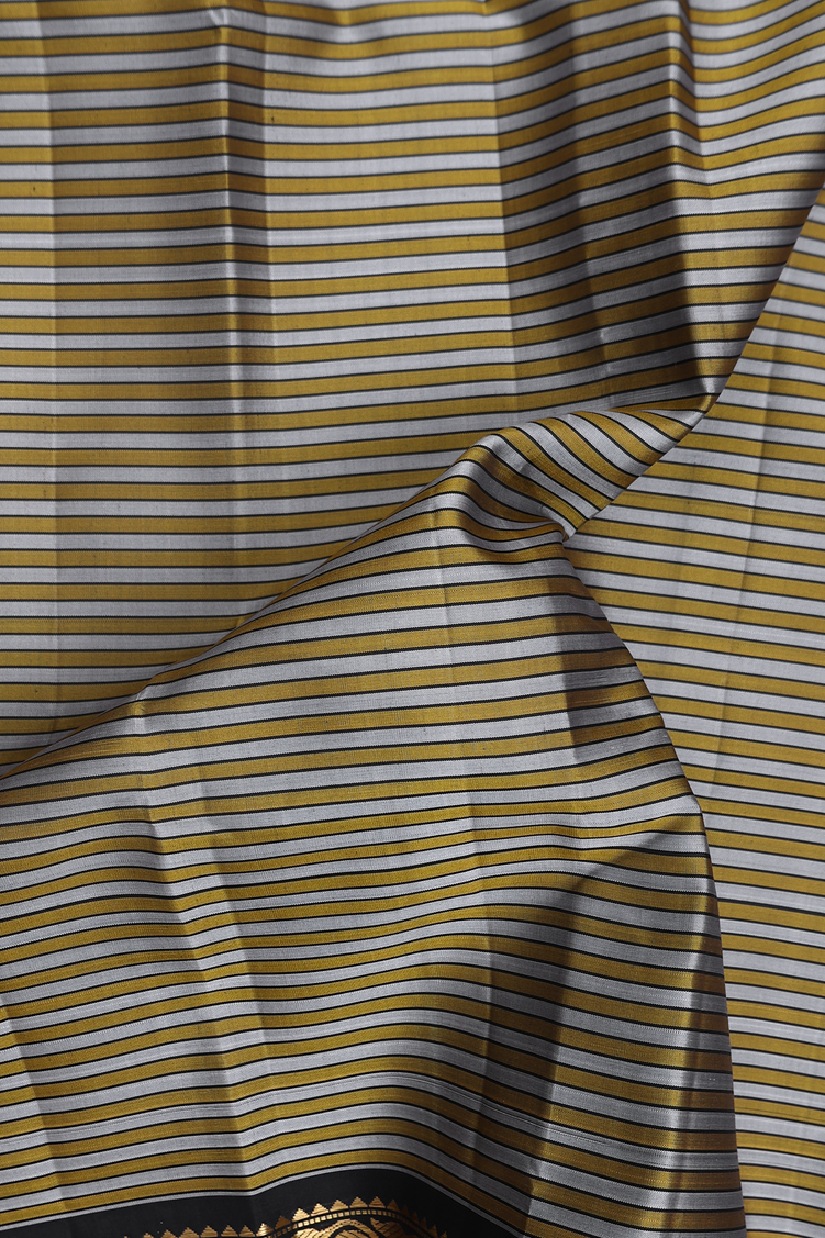 Kanchipuram Silk Saree In Grey And Yellow With Stripes Design