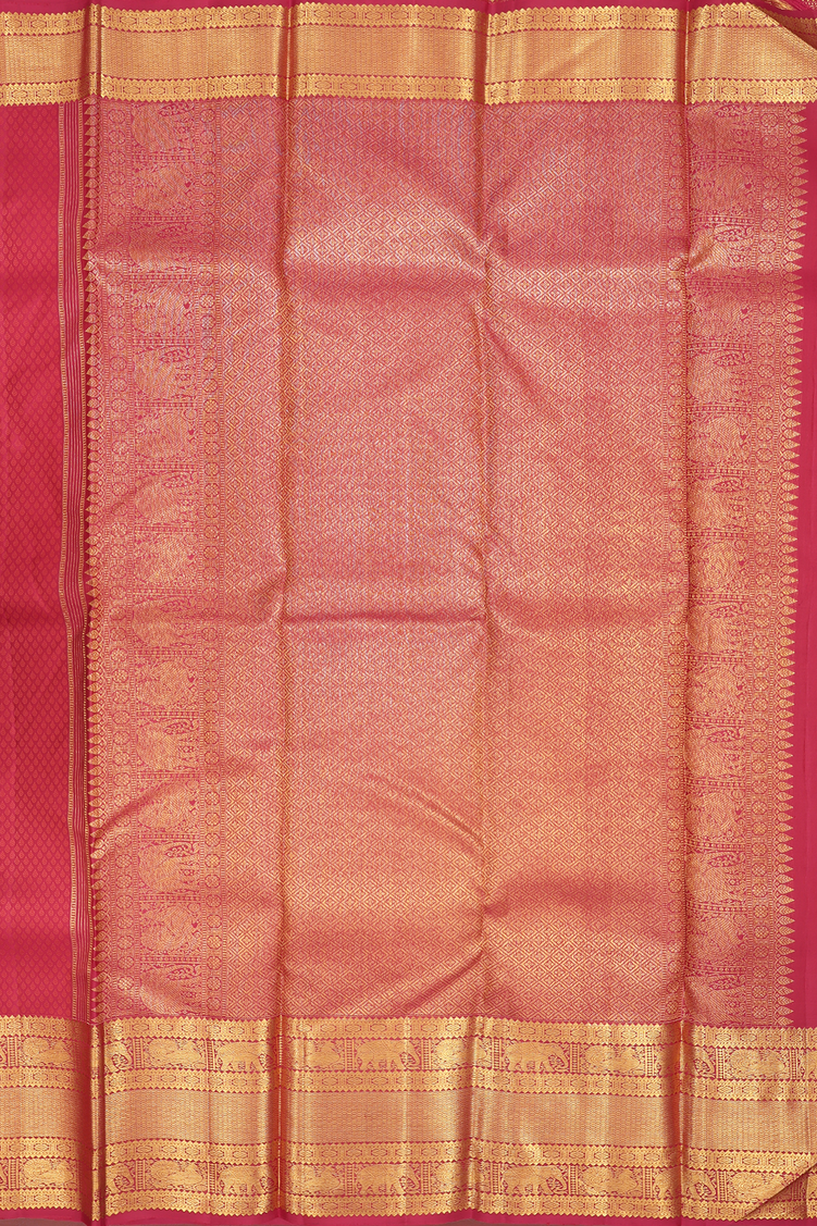 Kanchipuram Silk Saree In Hibiscus Red With Jacquard Pattern