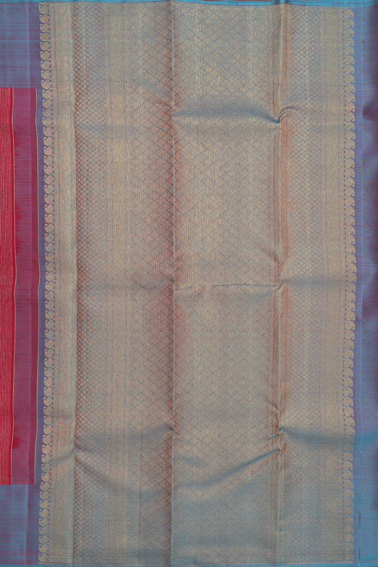 Kanchipuram Silk Saree In Hibiscus Red With Stripes Design