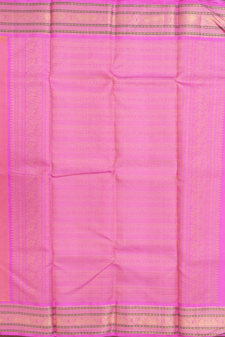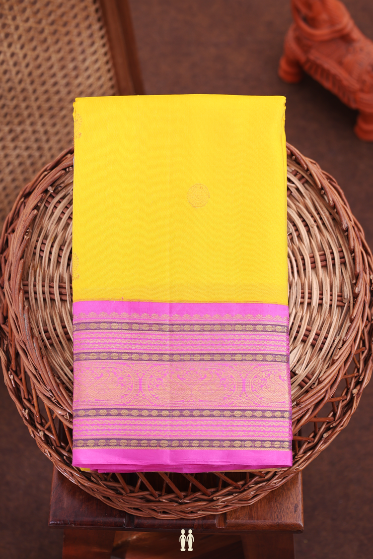 Kanchipuram Silk Saree In Honey Yellow With Peacock Buttas