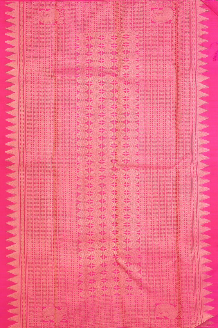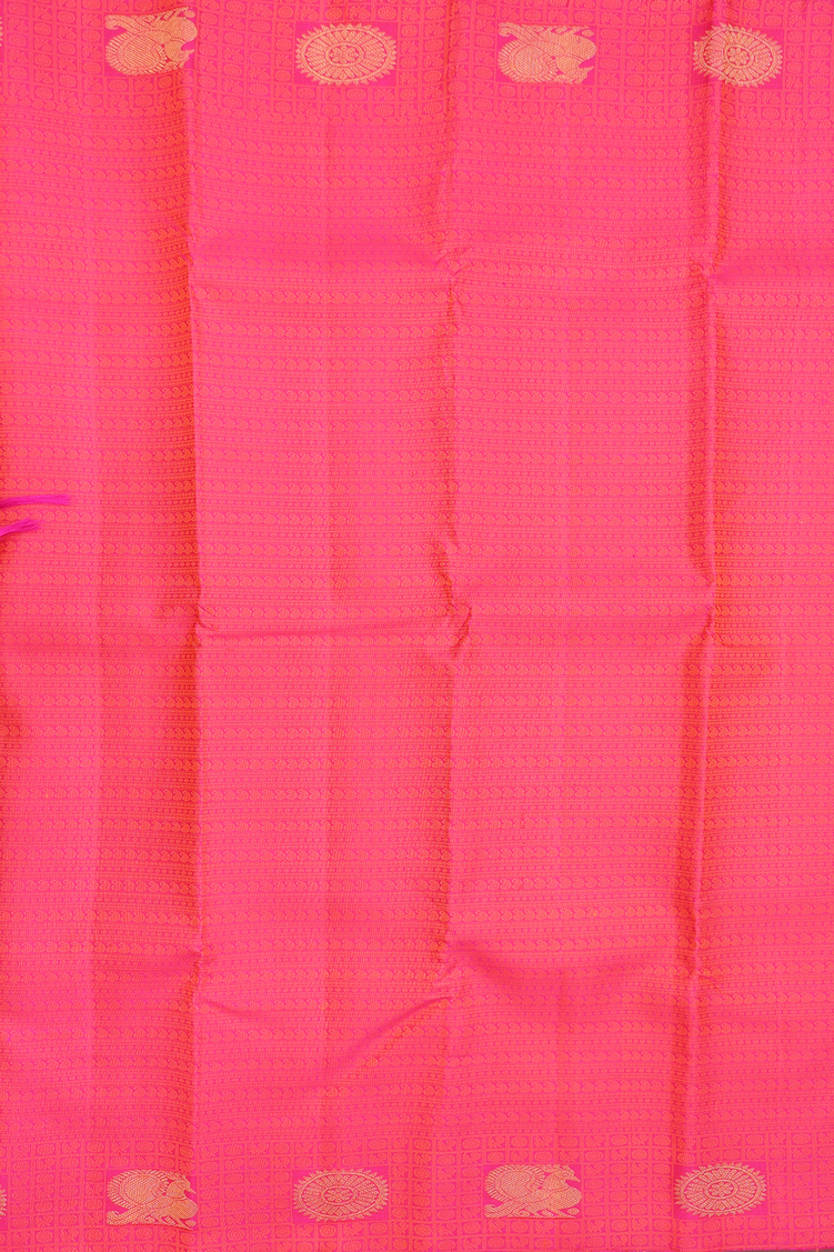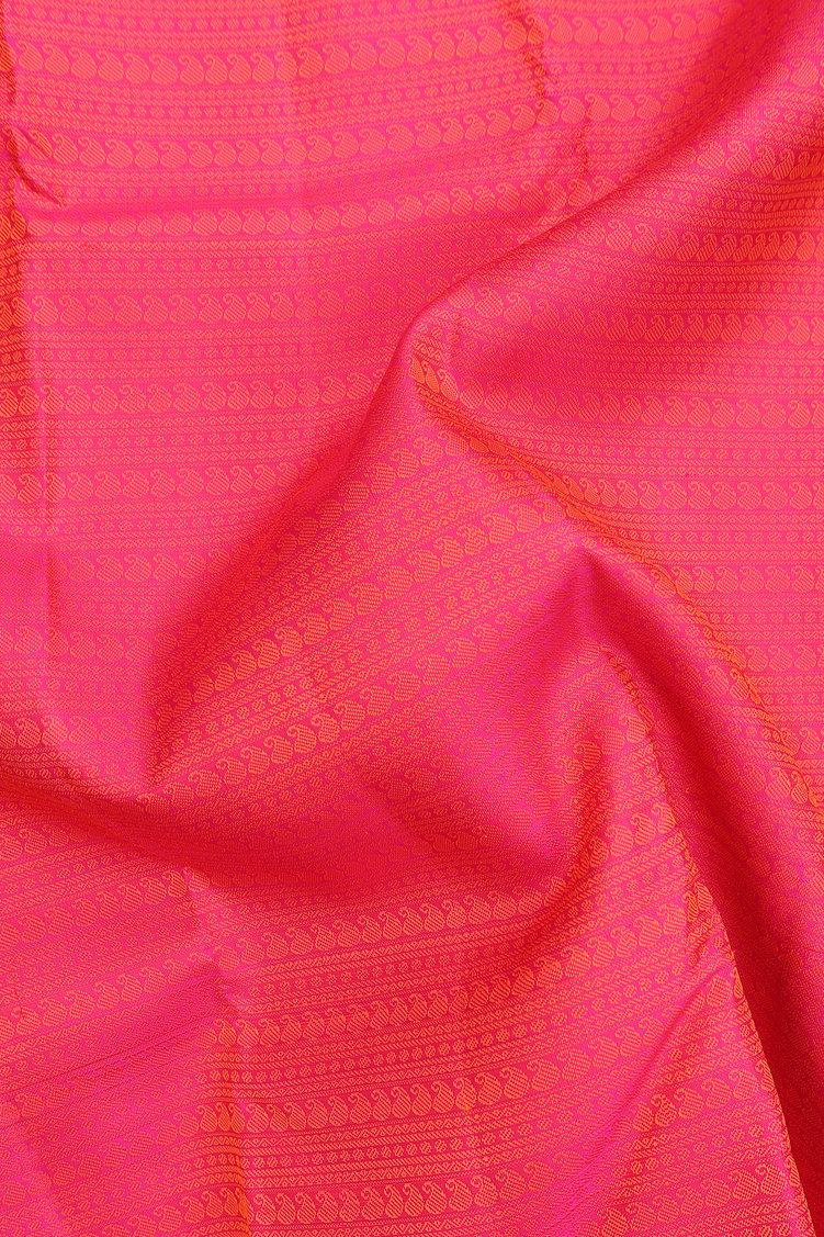 Kanchipuram Silk Saree In Hot Pink With Jacquard Pattern