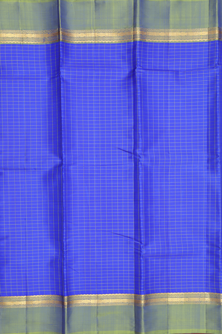 Kanchipuram Silk Saree In Indigo Blue With Checks Design