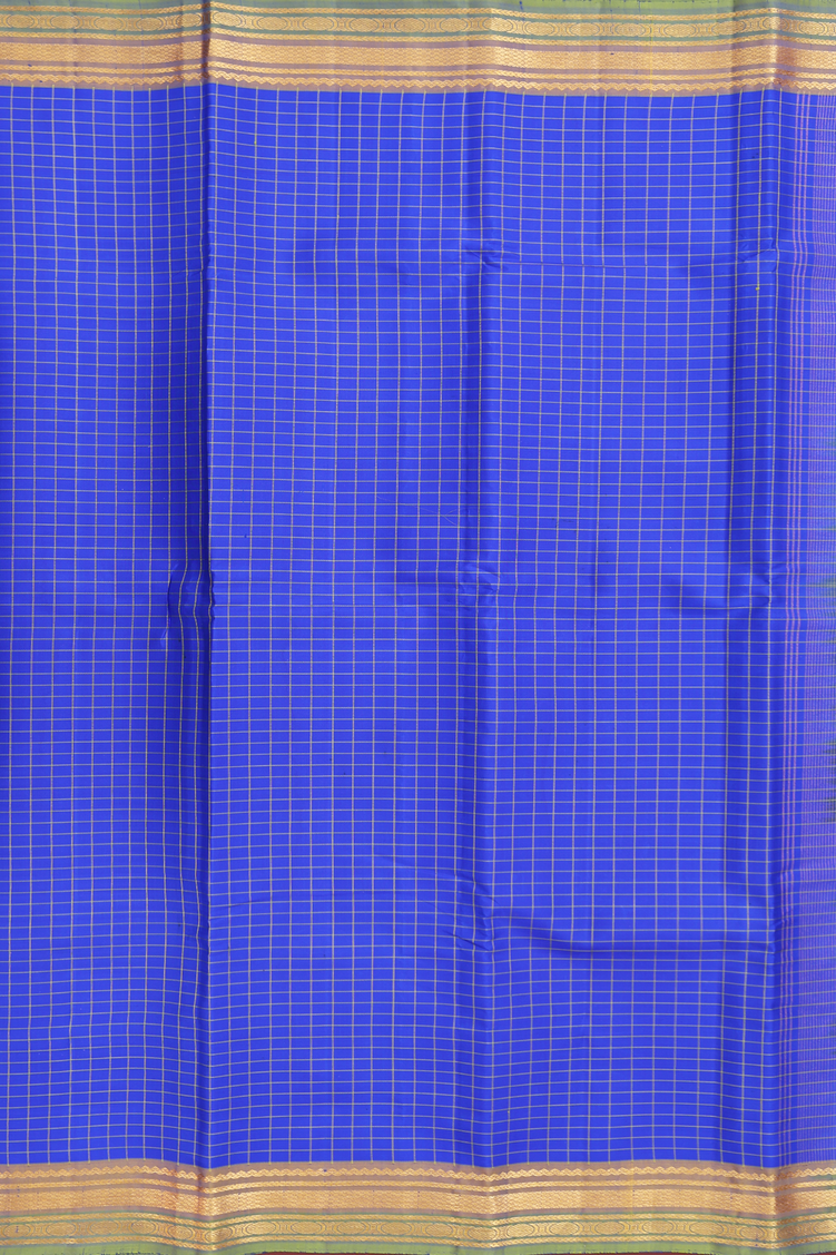 Kanchipuram Silk Saree In Indigo Blue With Checks Design