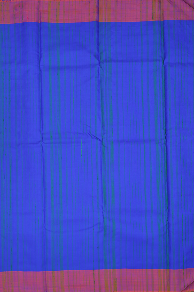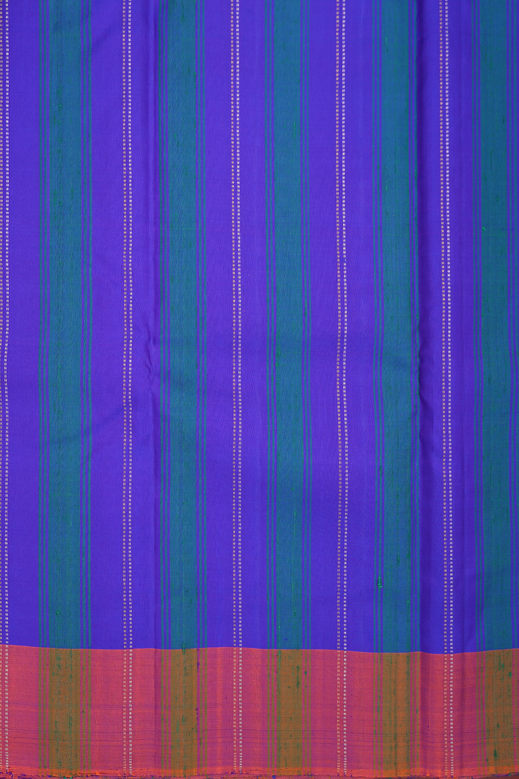 Kanchipuram Silk Saree In Indigo Blue With Stripes Design