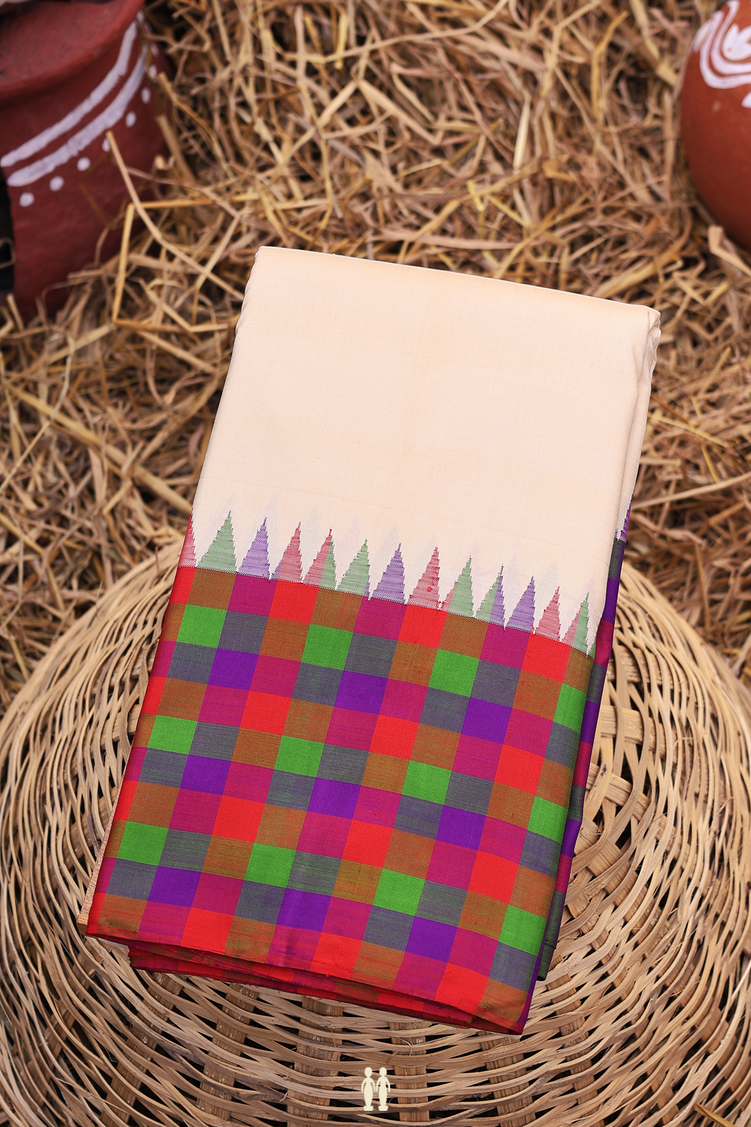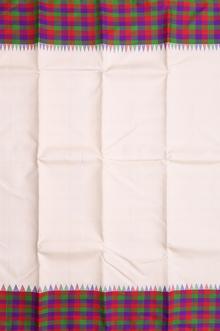 Kanchipuram Silk Saree In Ivory With Contrast Border