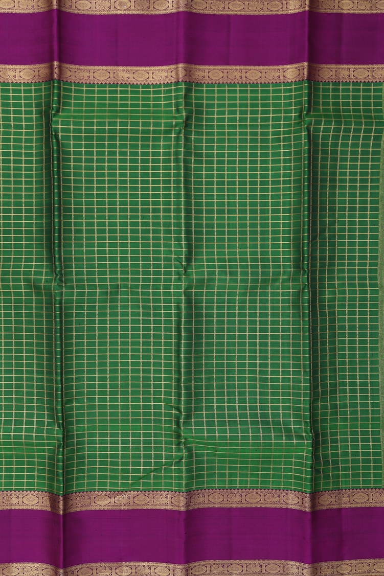 Kanchipuram Silk Saree In Leaf Green With Checks Design