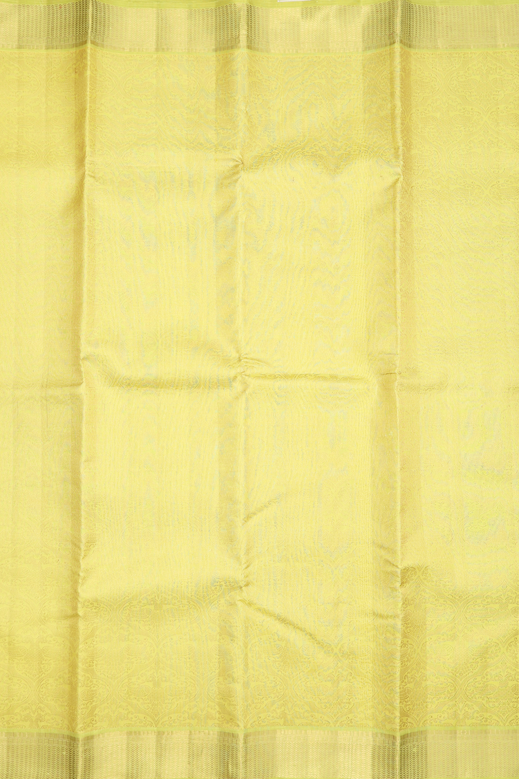Elevate your elegance with this kanchipuram silk saree in a fresh lemon yellow shade, featuring exquisite iruthalai pakshi motifs. Handcrafted with rich silk, it offers a graceful drape and a lustrous finish, perfect for special occasions. The intricate design highlights traditional artistry, making it a timeless addition to your collection.