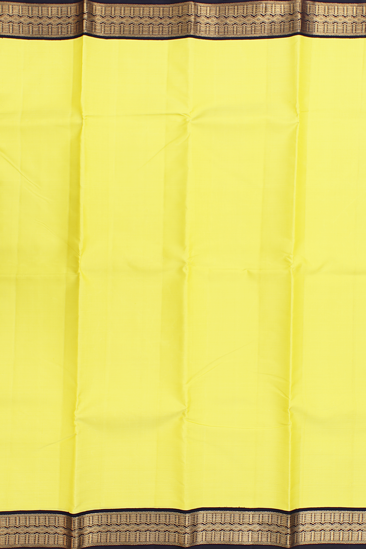 Kanchipuram Silk Saree In Lemon Yellow With Korvai Border