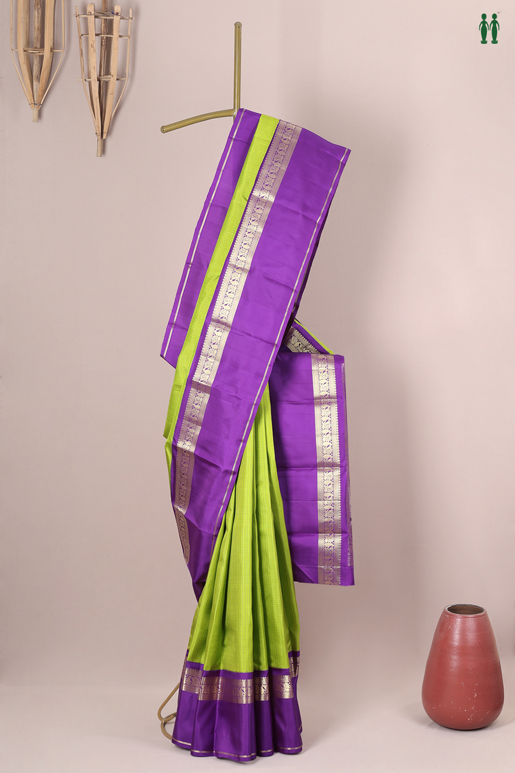 Kanchipuram Silk Saree In Lime Green With Checks Design