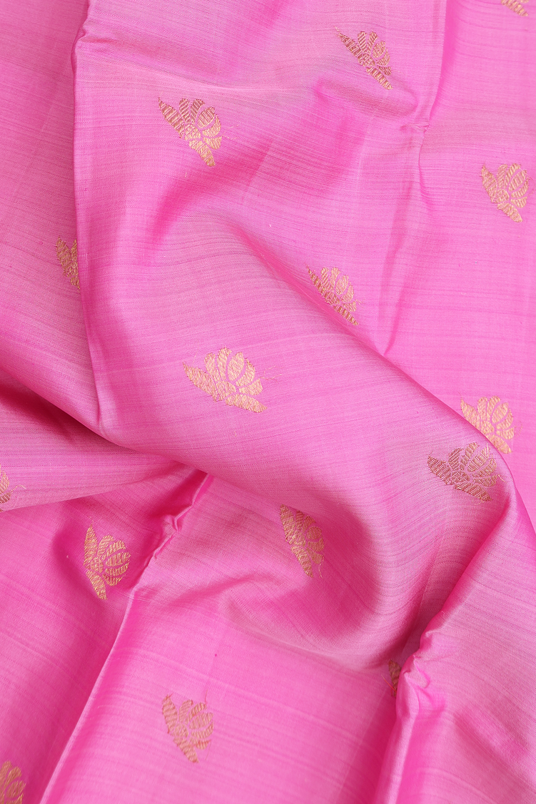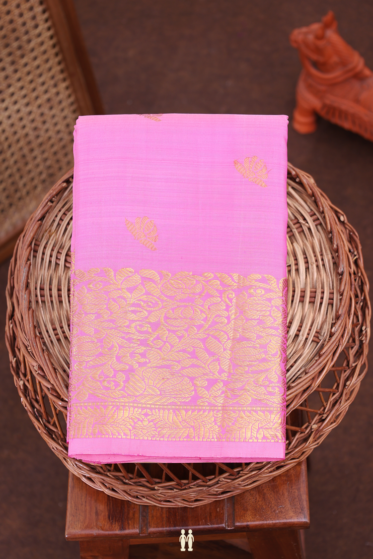 Kanchipuram Silk Saree In Lotus Pink With Zari Buttas
