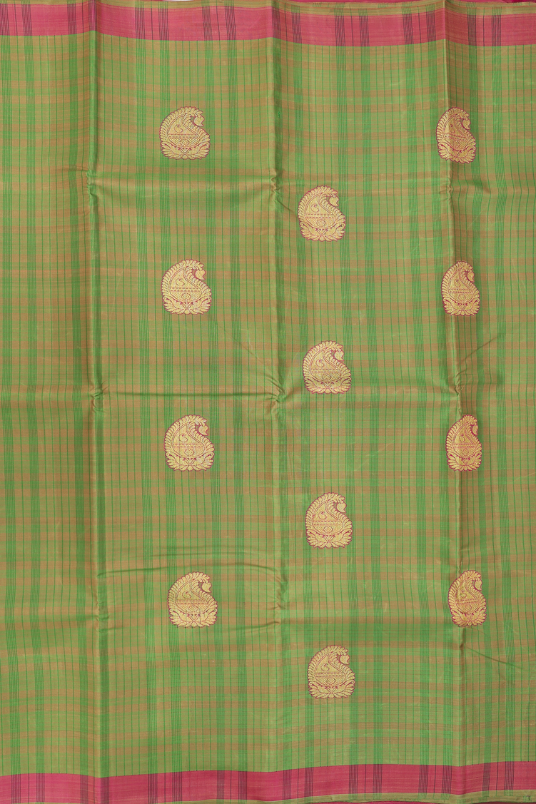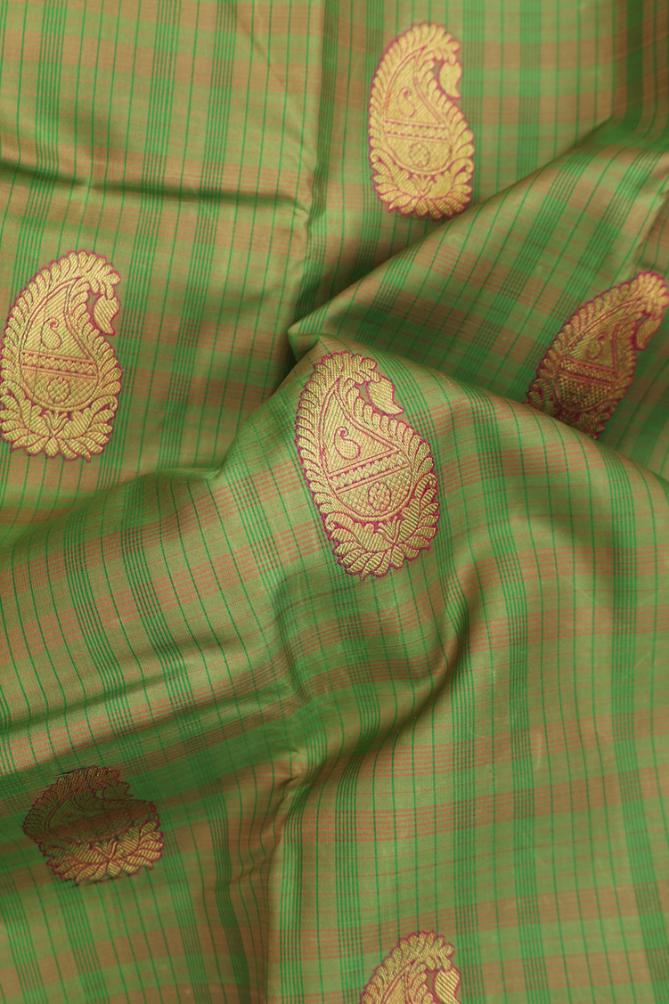 Kanchipuram Silk Saree In Moss Green With Checks Design