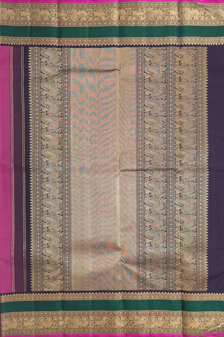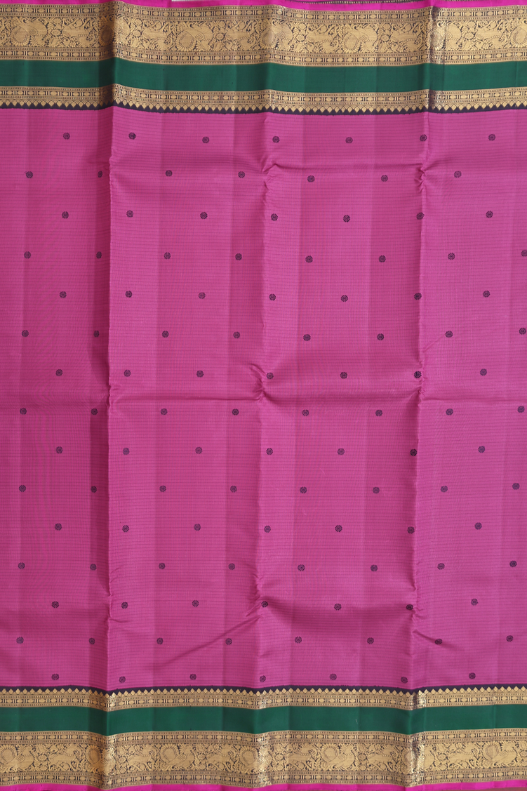 Kanchipuram Silk Saree In Mulberry With Stripes Along Buttas