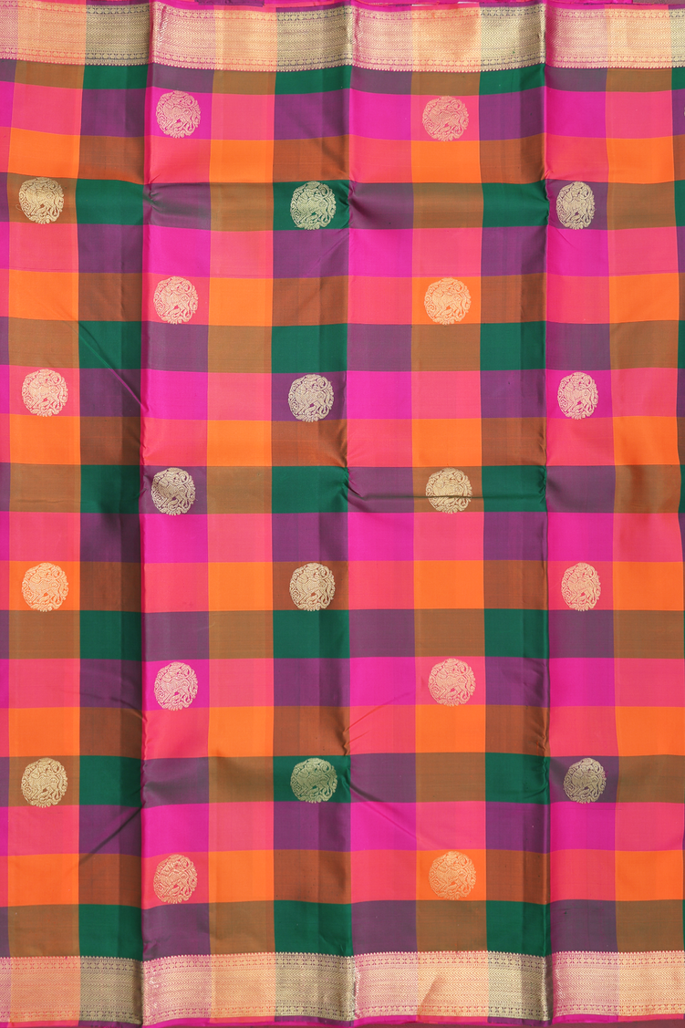 Kanchipuram Silk Saree In Multicolor With Checks Design